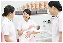 助産師は、主に出産を控える女性の精神的・生理的な問題に対処し、自分自身の責任において出産時の援助、出産後のケア、育児に対するアドバイス等を行います。薬剤や医療用具は用いず、女性のもつ自然な力が最大限に発揮できる介助を行います。また出産後の母子のケアも行います。
