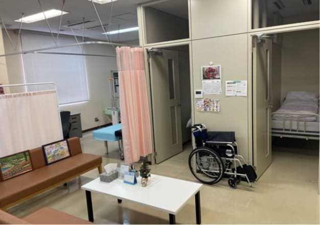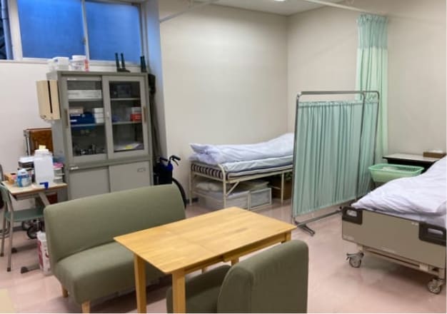 急病・軽度の外傷などの応急処置を行います。必要に応じて医療機関を紹介します。また、体調が悪いときはベッドで休むこともできます。