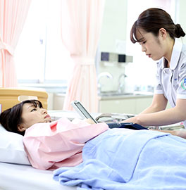 看護師とは医師の指示の下、専門的な知識や技術に基づいて、診療の補助に加えてさまざまな病気や障害で療養生活を送っている患者様が過ごし易いよう日常生活の援助を行い、自らの判断で主体的に看護を行う者です。身体と心理、生活環境、社会的立場などを考慮に入れ、最適な医療環境をつくり安心と看護を提供する、医療チームの一員として患者様に最も近く、最も長く接する職業です。