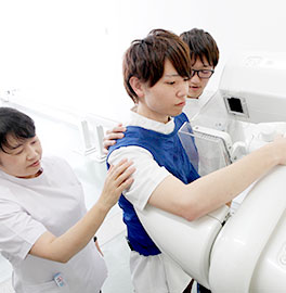 診療放射線技師は、放射線を用いたさまざまな医療用機器や装置を扱いながら医師の指示の下、専門的な検査・診療を行います。医療での理工学的専門知識と医学的基礎知識の双方を身につけた医療技術者で、エックス線やCTスキャナー等を用いて、がん治療など医療診療をサポートします。医師以外で体に放射線を照射できる、唯一の資格です。