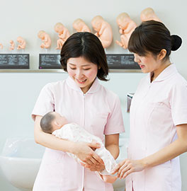 助産師は、主に出産を控える女性の精神的・生理的な問題に対処し、自分自身の責任において出産時の援助、出産後のケア、育児に対するアドバイス等を行います。薬剤や医療用具は用いず、女性のもつ自然な力が最大限に発揮できる介助を行います。また出産後の母子のケアも行います。