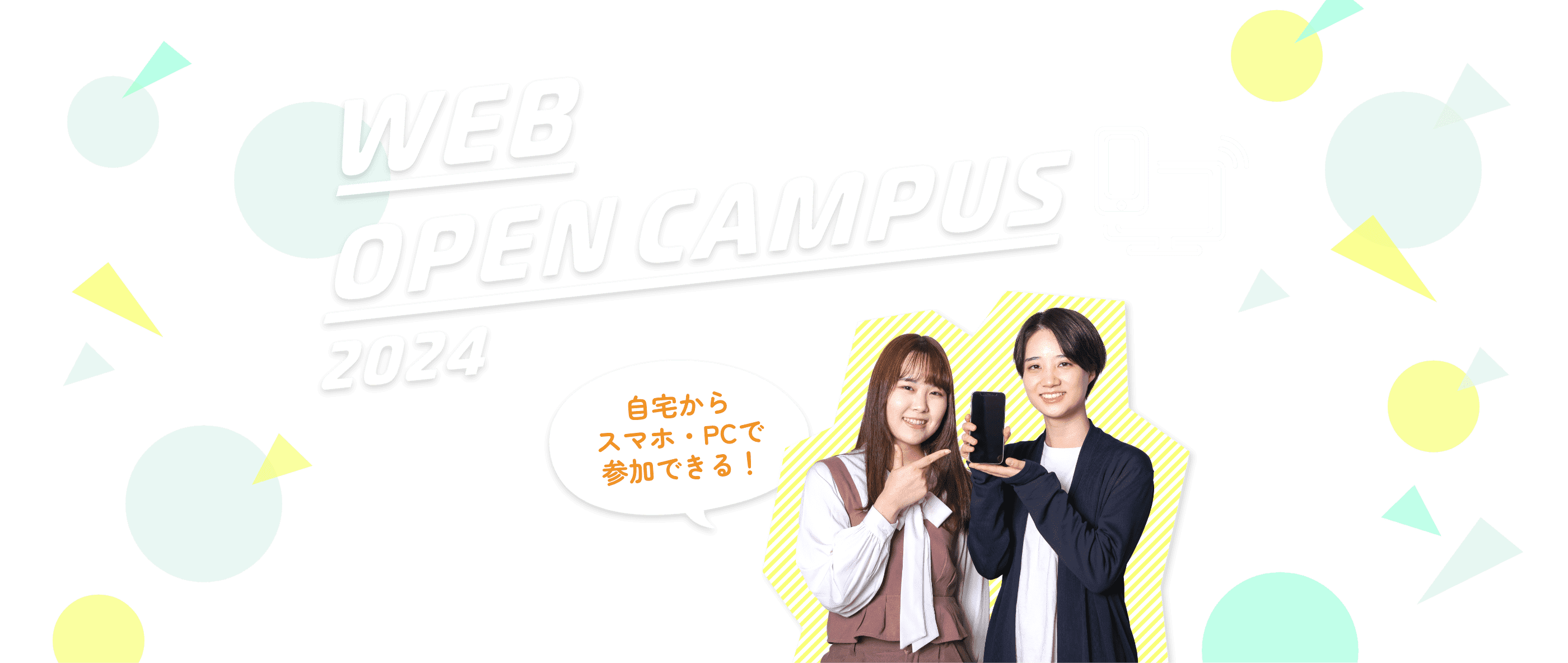 ご自宅からスマホ・PCで気軽に参加OK。キャンパスのこと、学科のこと、授業のこと、入試のこと、欲しい情報が気軽に手に入る!自宅から大学を体験してみよう!