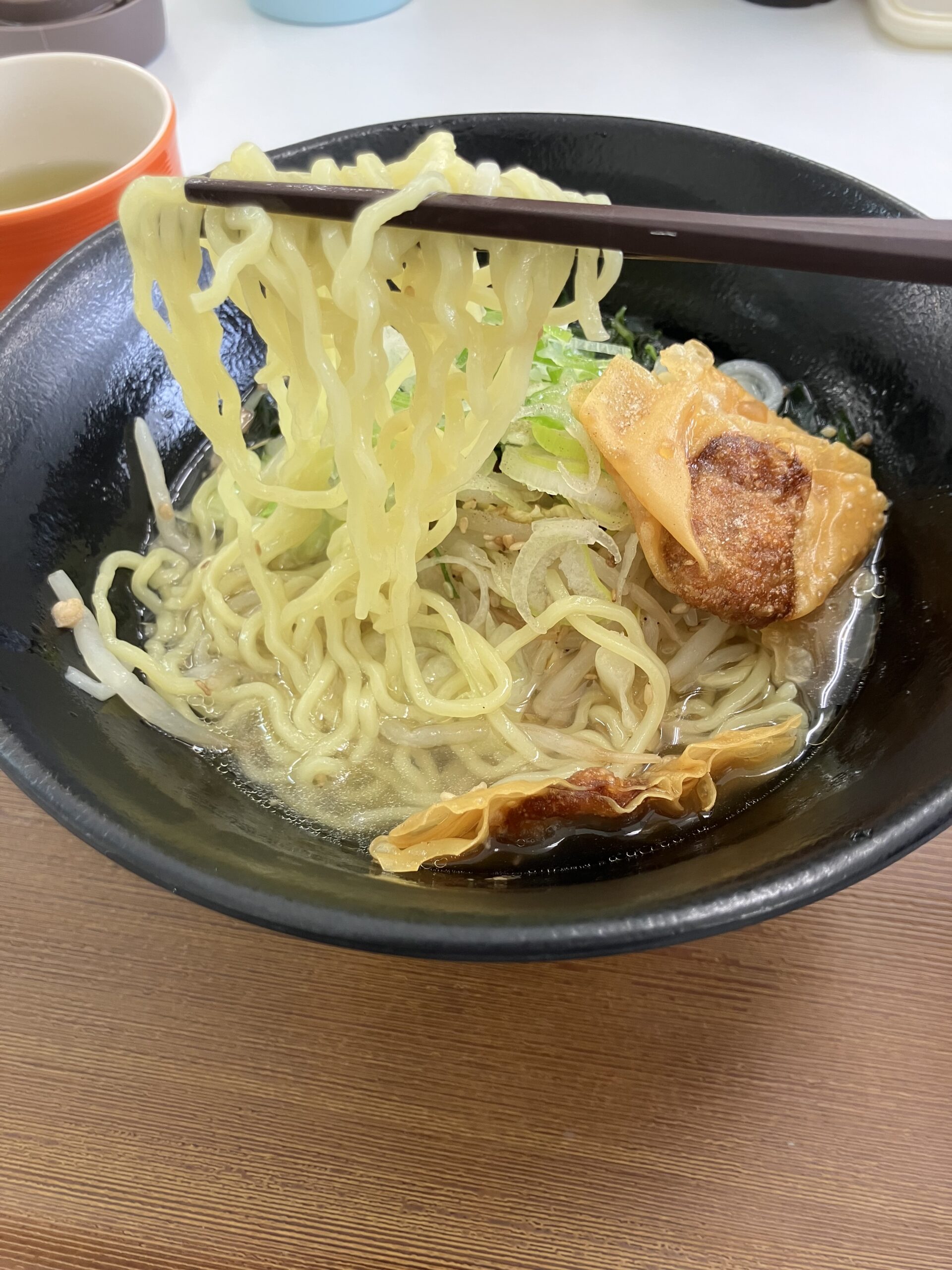 早速スープをすすったところ思わず「なるほど…」とつぶやいてしまった。目の前の部下が怪訝そうな顔でこちらを見ているがこれは無視した。塩ベースのあっさりしているスープに揚げニンニクチップが浮かんでいて、これがスープに見事なパンチを与えている。岐阜タンメンを食べたことがある方はわかると思うが、あの味の魅力はニンニクの効いた塩ベーススープにある。口に含むとまずニンニクのパンチが来て、それをあっさり塩スープが優しく浄化していく。パンチがあるのに重たくない…サウンドはゴリゴリのロックサウンドなのに、耳に残るどこか優しく切なげなメロディとメッセージ…まるで私が敬愛するあのバンドのような味なのだ。