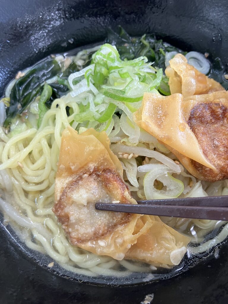 そして具の揚げワンタン。これが非常に良い仕事をしている。パリッと揚げられているため、普通に食べればよいアクセントとなるし、スープに浸して食べればいい塩梅にスープの風味がプラスされ、食感もいくぶん柔らかくなる。ワンタンの油と豚のダシが溶け出すことでスープの口当たりも少しマイルドになるため、このあたりは好みに合わせて食するといいだろう。『ワンタンをおかずにして麺を食べる』まさにこのコンセプトがしっくりくる。これを具にしようと考案した人間にノーベル平和賞を送りたい。
