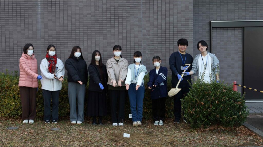 これまでに行ってきたフジバカマやスズランの移植に続き、今回は実用性と観賞性を兼ね備えた3種類の樹木が新たに仲間入り。自分たちの手で土を整え、苗木を植えることで、キャンパスの自然がより豊かになるだけでなく、植物について学ぶ貴重な機会にもなりました。