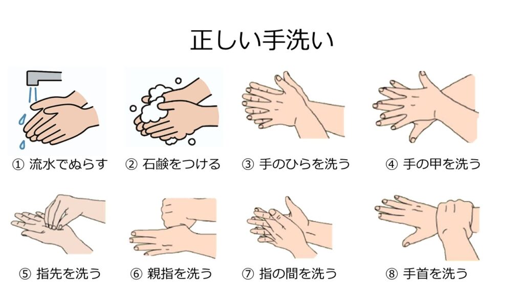 01の手洗いについて、正しい手洗いの仕方も紹介します[7]。