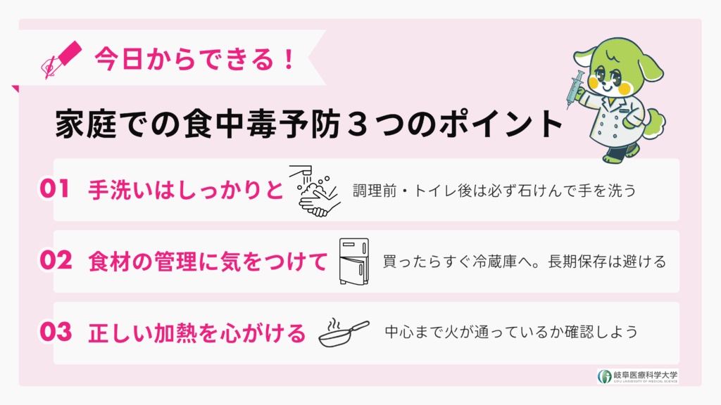 特に夏場は、食中毒のリスクが高まる季節。日頃のちょっとした心がけが、家族の健康を守るカギになります。