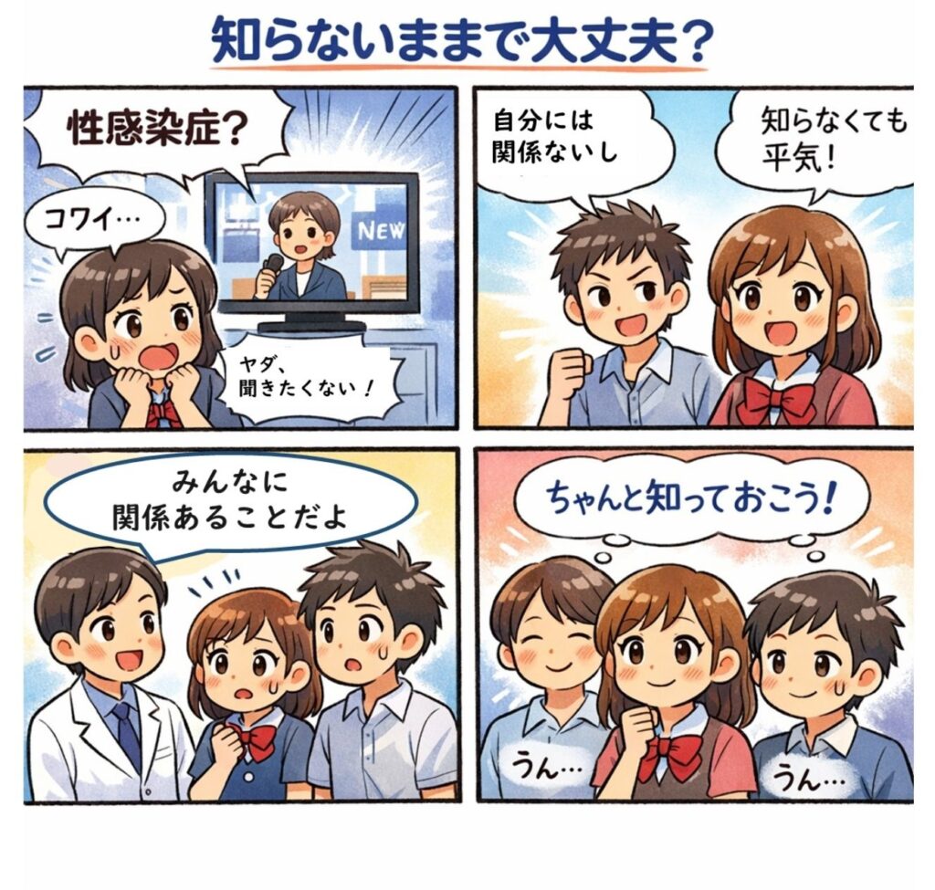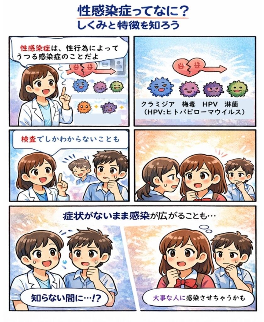 「性感染症」や「性病」という言葉を聞くと、なんだかドキッとしたり、少し怖いイメージを持ったりする人も多いのではないでしょうか。保健の授業やテレビ、ネットのニュースでその言葉を見聞きしたとき、思わず話題を変えたくなったり、周りの目が気になったりした経験がある人もいるかもしれません。「自分にはまだ関係ない」「大人の話だから、今は知らなくてもいい」と思ってしまうこともあるでしょう。しかし、性感染症は特別な人だけがかかる病気ではありません。年齢や性別に関係なく、正しい知識を知らないままでいると、感染のリスクを高めてしまう可能性があります。だからこそ、怖がるためではなく、自分の体を守るための「身近な健康の話」として知っておくことが大切です。