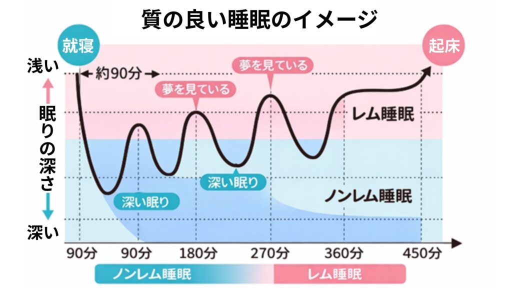 - 睡眠時間が短すぎると、後半のレム睡眠が削られ「集中力や気分の安定」に影響します。