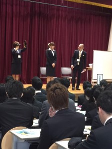当日はスーツ姿にてセミナーに臨み、就職活動に最も印象が良く見えるスーツの選択方法と着こなしについて学びました。最後に個人コーナーを設けたところ、多くの学生が真剣に質問をしていました。