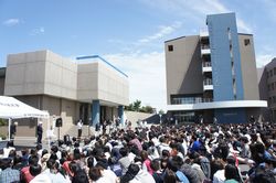 訓練では避難ルートの想定・避難場所・緊急連絡の方法などの確認が行われ、訓練終了後には学長から「日頃から防災意識を持って行動できるように」との講評がありました。
