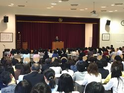 全体説明会では副学長より2年生には専門科目に対する心構えについて、4年生には国家試験や就職に対する心構えについての話がありました。