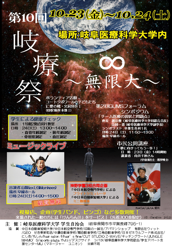 2015年10月23日(金)~24日(土)の期間にて「第10回 岐療祭」を開催致します。