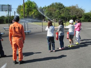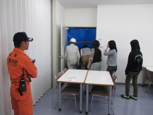 当日は「避難経路の確認」、「煙体験」、「消火器を用いた消火訓練」などの
