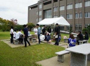 平成28年10月21日(金)と22日(土)の2日間、「岐療祭」が開催されました。初日は、紀藤自治会長の開会宣言と間野学長のあいさつから始まりました。学生バンドがその場を盛り上げながら、本学姉妹校である中日本自動車短期大学のイタリア国立フェラーリ工業専門学校からの留学生も訪問され、メインステージでの紹介と餅つきをして楽しい時間がありました。この日は、東京から精神科医でありマンガ原作者でもある、ゆうきゆう先生が、「7秒で相手の心をつかむ技術」とうテーマで講演がありました。人は初対面が大切であることをわかりやすい解説が行われあっという間の90分でした。講演の後は、本学学生に対する海外語学短期留学説明会があり、特に1年生は興味深く聞いておりました。さらに、サークルによるアカペラと軽音ライブで盛り上がり会場の雰囲気が最高潮に達する中、日が暮れて行きました。