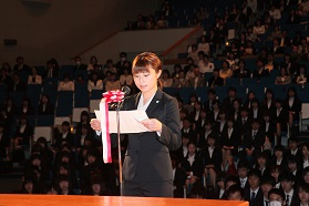 式典では間野忠明学長から、人間性豊かな医療技術者になるように勉学に励んでほしい旨の式辞が述べられました。