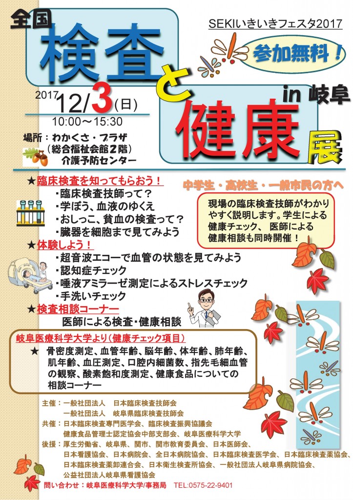 下記の要領で開催される「SEKIいきいきフェスタ2017」において、本学学生を中心とした「健康イベント」を開催します。