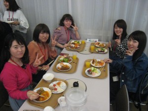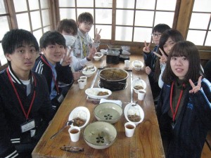 二日目は、学科を超えて数人のグループでカレー作りをしました。学生たちは、一致団結して自らの昼食を作ることでコミュニケーション力を養う機会となりました。この日は終日雪で寒かったのですが、学生が使用していたクラフトハウスの中は熱気で温かく、活発に活動できた2日間でした。
