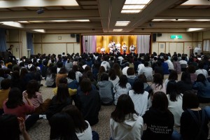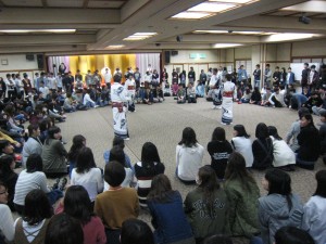 本年も昨年同様に、医療人として必要なコミュニケーション能力の向上を目指し、たくさんのプログラムを行いました。間野学長の挨拶後、山岡副学長から「自分の未来は自分で創ろう」の講演を行いました。その後は、教務部長の講演、学生相談室の説明の後に、全員で学歌の練習を行いました。学科別研修会では、各学科の職業内容の説明を受け、4年後の学生自身の姿を見つめた内容を学びました。昼食後は、ヴァカンス村郡上高原ホテルへ移動して、各科独自の内容で研修を行いました。この日の天候は雨でしたが、夕食後は、室内で郡上踊り保存会の方たちによる踊りの講習があり、汗を流しながら日本3大民謡から伝統と文化を学んで人間性を豊かにするひとときとなりました。
