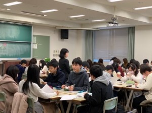 1年生対象に「厚生労働省委託事業 大学生等就職ガイダンス WORK BOOK キャリア形成支援期コース」の テキストに沿って、グループディスカッション形式にて講義と実践を行いました。3学科混合のグループでは、初めて話す学生とのグループでの戸惑いを感じながら、テーマごとにディスカッションを体験しました。
