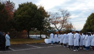 令和元年11月25日(月)、本学関キャンパスの動物慰霊碑前において、教育に必要な学生実習に供された実験動物の慰霊祭を執り行いました。式典には、山岡学長をはじめ、教職員や臨床検査学科の学生等125名が参列しました。祭主の学長から「動物福祉の精神を尊重し動物実験を行うことを誓い、尊い命に哀悼と感謝の意を表します」との弔辞に続き、厳かな雰囲気の中、黙祷し動物の御霊に参列者が白菊を手向けました。