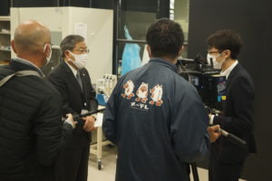 1112()放送のメ~テレ 情報番組「アップ!」にて本学が保有する機器を活用したPCR検査に関する取り組みが紹介されました。取材では、実際のPCR検査室の様子を撮影し、本学の山岡学長がインタビューを受けました。
