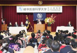 令和2年度岐阜医療科学大学の学位授与式ならびに修了証書授与式が、令和3年3月19日 (金)に本学関キャンパス早緑ホールにて執り行われました。今年度は保健科学部255名、助産学専攻科18名、そして大学院4名が本学を卒業し、地域に貢献できる医療人を目指して、新たな一歩を踏み出しました。