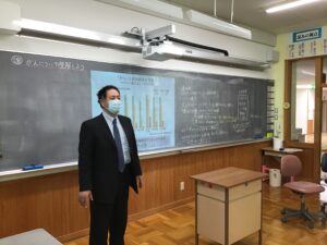保健科学部、臨床検査学科の永井慎准教授は、2022年3月8日(火)に白川村立白川郷学園の依頼により、義務教育課程8年生の生徒10名に対し、「がん教育」を行いました。