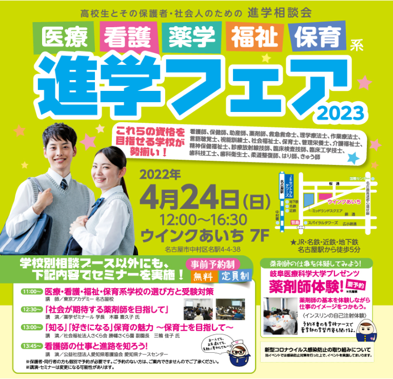 「医療・看護・薬学・福祉・保育系進学フェア2023」に、岐阜医療科学大学も参加します。