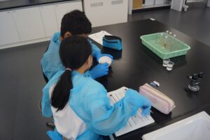 当日は下記の4つのプログラムを実施し、本学の教員と学生の指導のもと、集まった小学生・中学生の皆様に白衣を着用しての様々な化学実験を体験いただきました。参加者の皆様には、「初めて大学という場所に入ってワクワクした」、「本格的な化学や医療を感じることが出来た」「丁寧に学生さんが教えてくれた」などのご意見をいただき、盛況のうちにイベントを終了することができました。