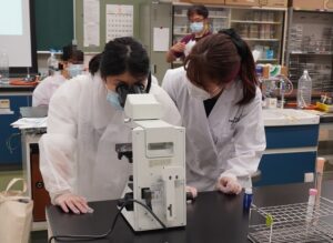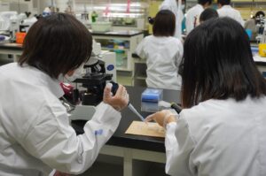 あらかじめプレパラートに用意した納豆や乳製品などの食品微生物を