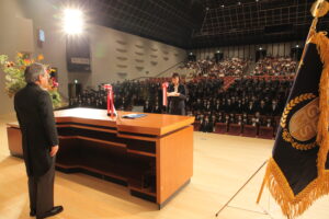 式典では山岡学長より「初心を忘れず、意欲を持って自己研鑽に努め、選んだ道をまっすぐに突き進んでほしい」と式辞が述べられました。