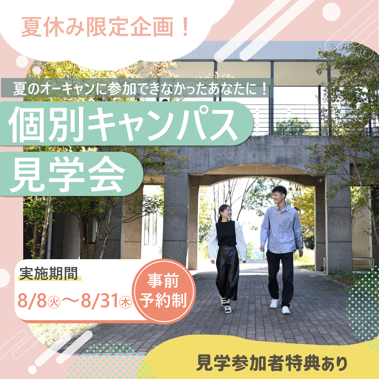 夏休み期間限定で『個別キャンパス見学会』を実施します。