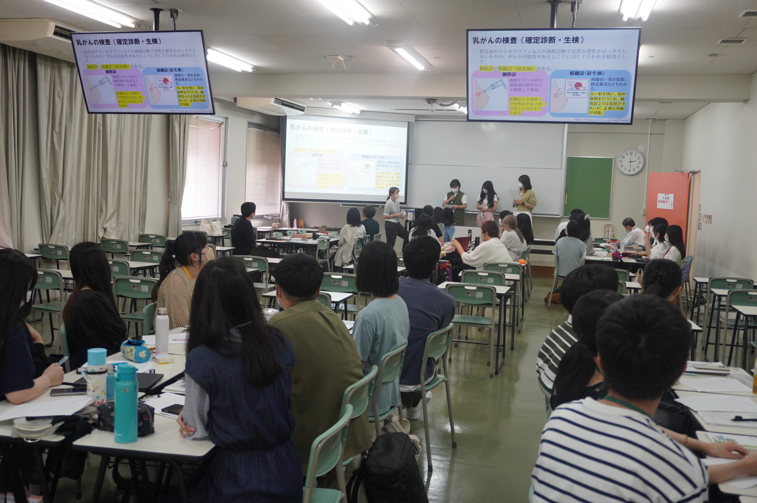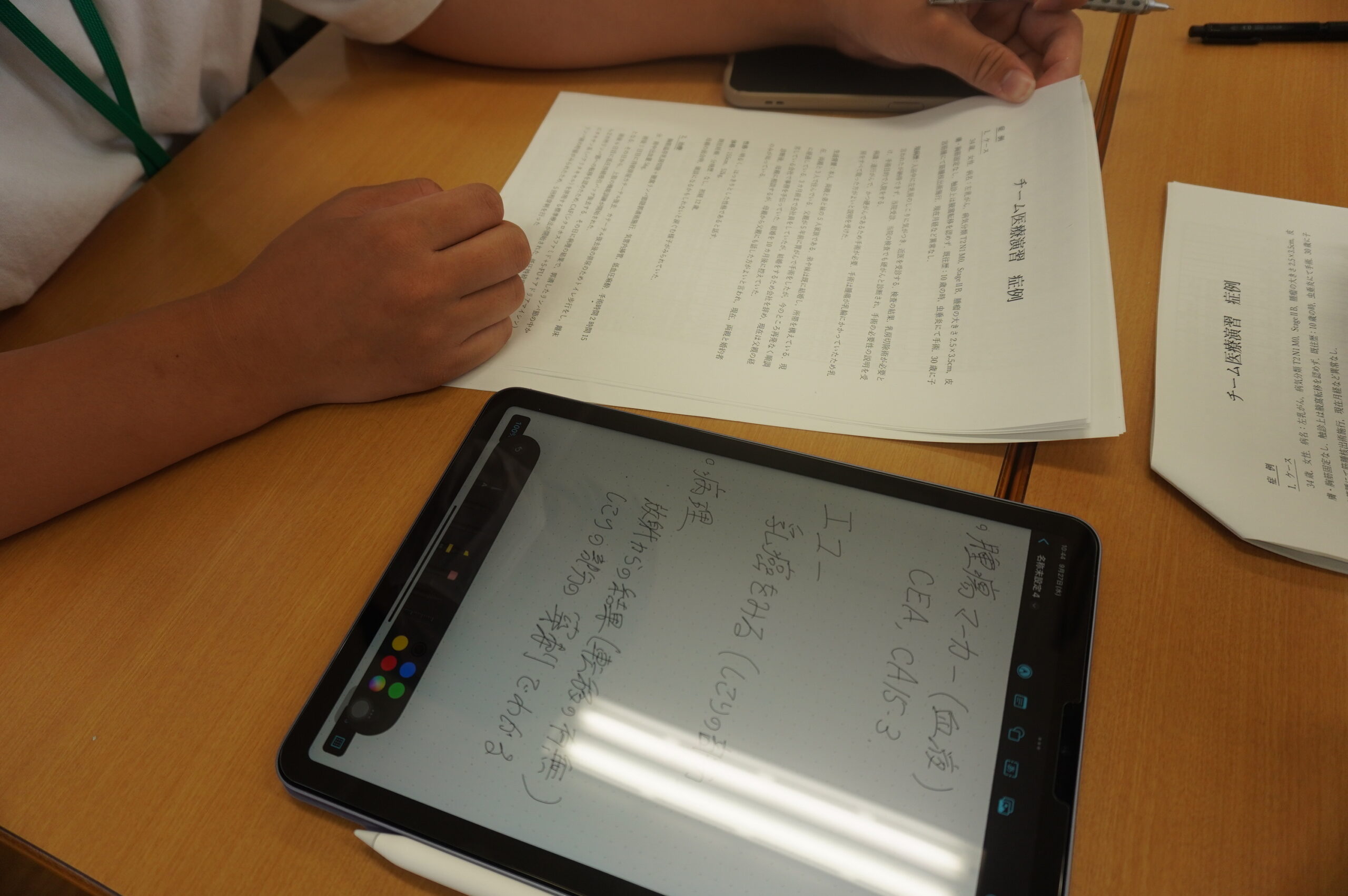 今回は「乳がん」を事例にそれぞれの学科の学生が混合した医療チームとなり、事例から学習すべき内容を決め、