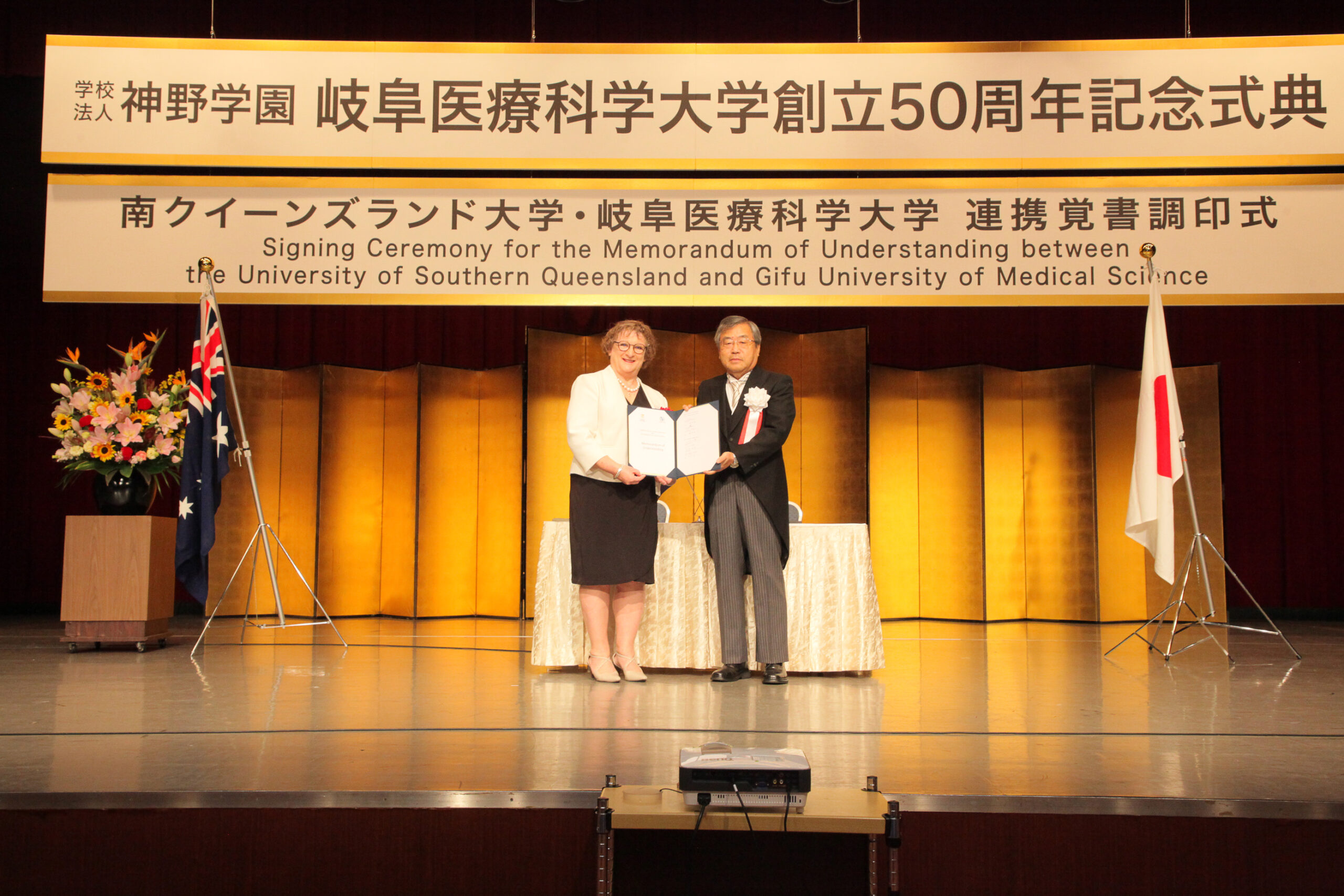 9月24日、開学50周年式典にて行われた本学との連携覚書調印式には、カレン・ネルソン副学長とジュリー・ランバート国際教育部長がご出席され、今後の連携に向けた枠組みを定めた文書に調印を行いました。