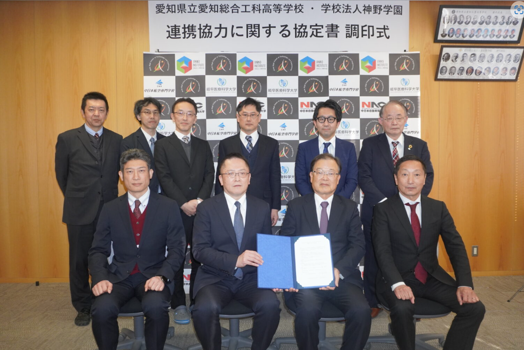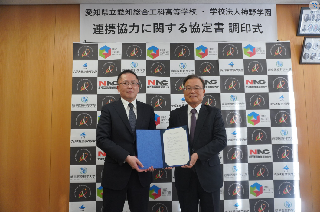 愛知県立愛知総合工科高等学校(所在地:愛知県名古屋市 校長 山口直人)と学校法人神野学園(所在地:愛知県名古屋市 理事長 山田弘幸)が設置致します、岐阜医療科学大学(岐阜県関市、可児市)、中日本自動車短期大学(岐阜県坂祝町)、中日本航空専門学校(岐阜県関市)の 3 校において教育連携協定を締結いたしました。