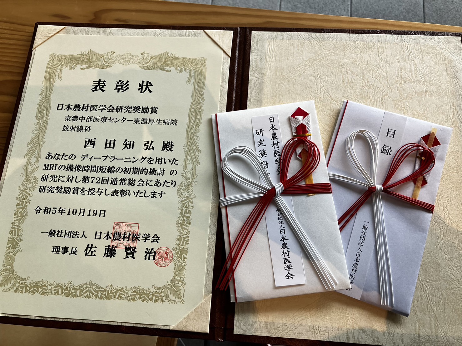 本学大学院にて研究を実施した西田知弘(令和4年度修了)の論文が,日本農村医学会 令和5年度研究奨励賞を受賞いたしました.秋田県で開催されました第72回日本農村医学会学術総会にて表彰されました.