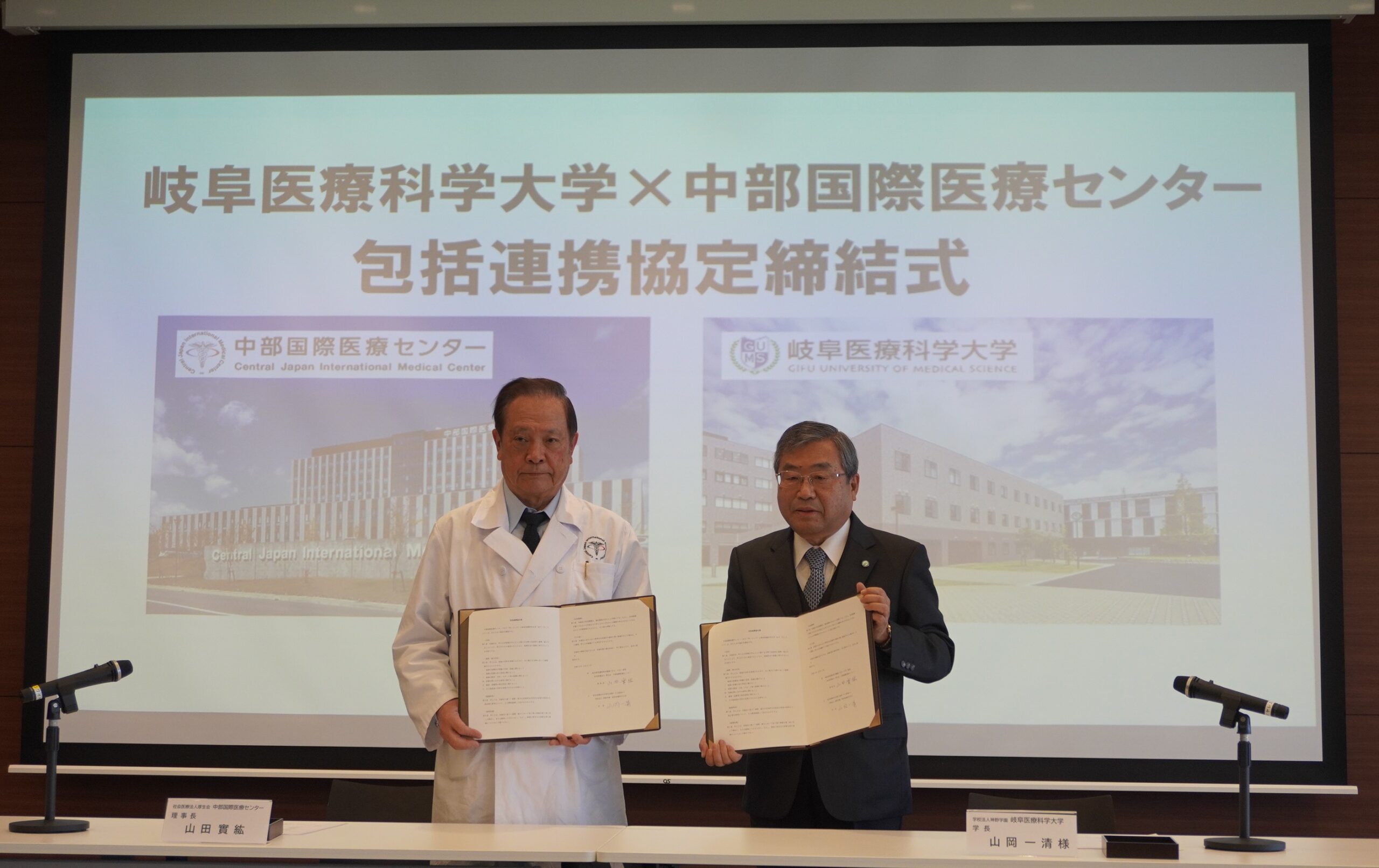 2月27日(火)、本学と中部国際医療センター(岐阜県美濃加茂市)は、包括連携協定締結式を行いました。