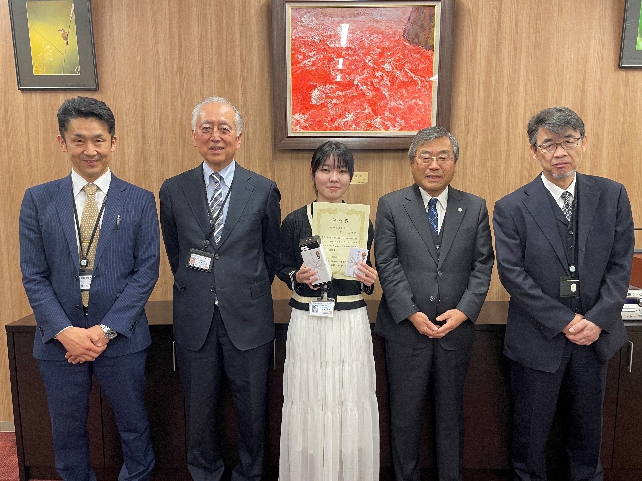 優秀な成績を収めた有賀さんには、日本バイオ技術教育学会より表彰状と記念品が渡されました。 日本バイオ技術教育学会ホームページはこちら( http://www.bio-edu.or.jp/)をご覧ください。 |