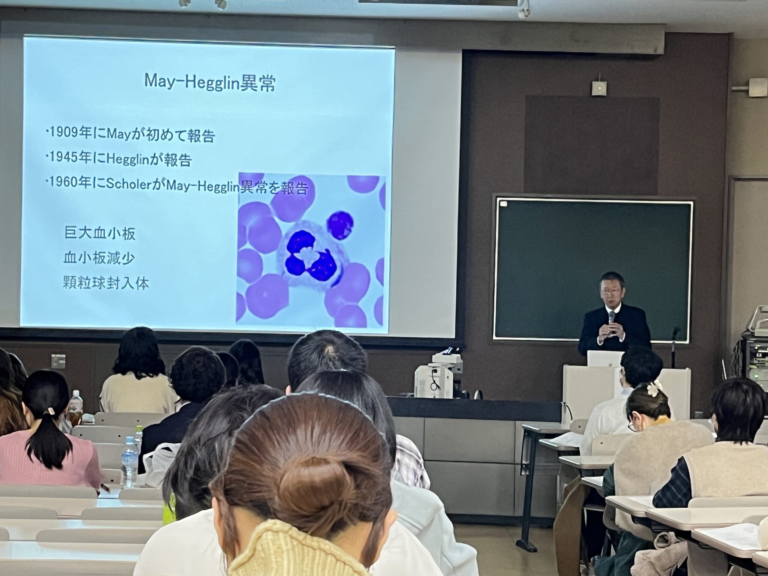 保健科学部臨床検査学科國島伸治教授は、令和6年12月1日、山梨大学で開催された日本臨床衛生検査技師会 関甲信支部・首都圏支部血液検査研修会で、「May-Hegglin異常-見過ごすことが多い全身性疾患-」の総説講演を行いました。