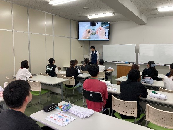 本実習は、株式会社リプロライフ様の全面的なご協力のもと実現したもので、同社より80名分の卵凍結・解凍キットをご提供いただきました。さらに、臨床現場での胚培養士経験のある阿部様および高橋様をお招きし、学生への直接指導も行っていただきました。