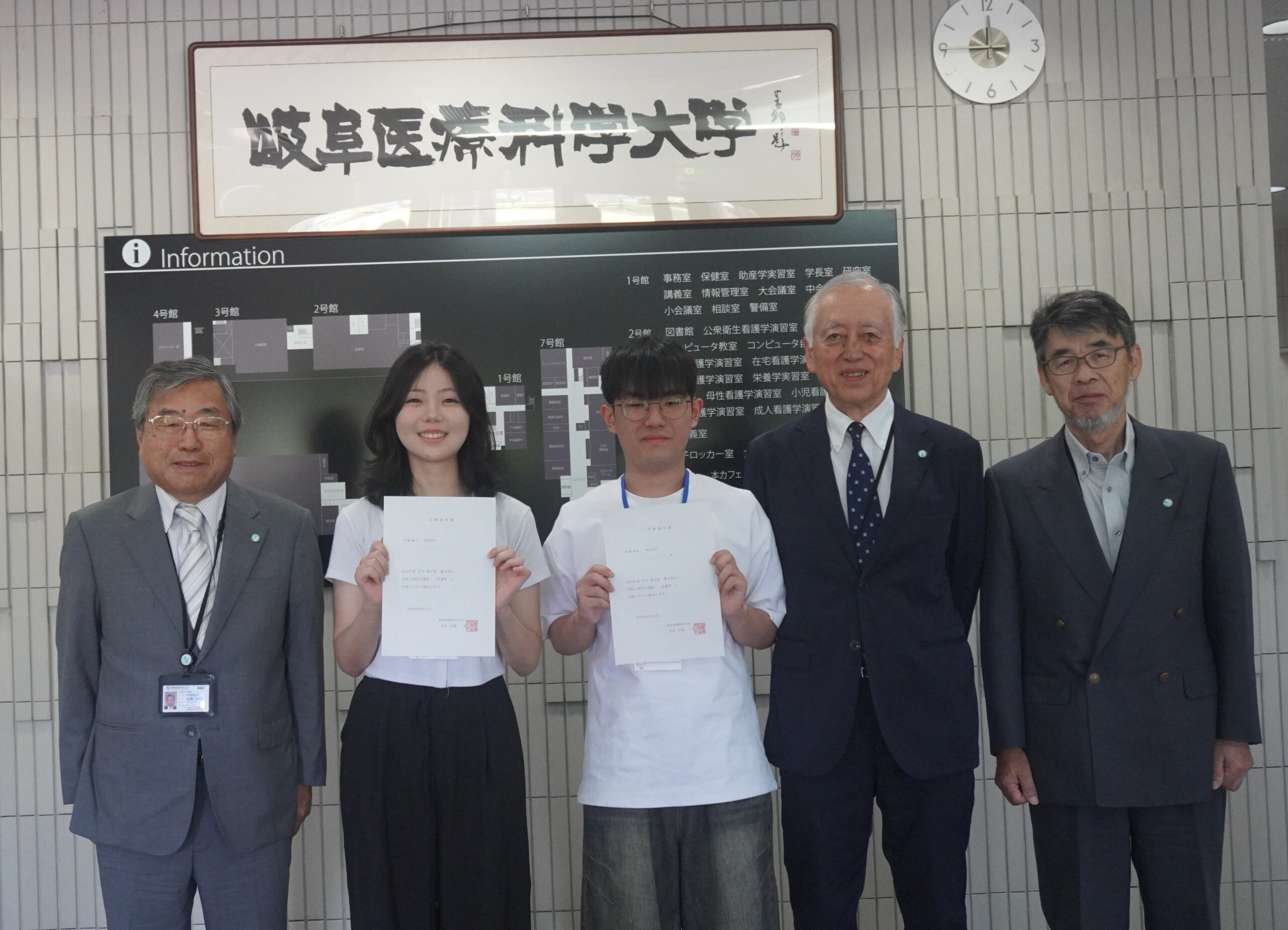 なお、参加された学生の中には、本学と江南スカイ語学院が連携して行う早期入学試験である一次選考試験に合格している学生2名もおり、山岡学長より一次選考合格通知書が手渡されました。