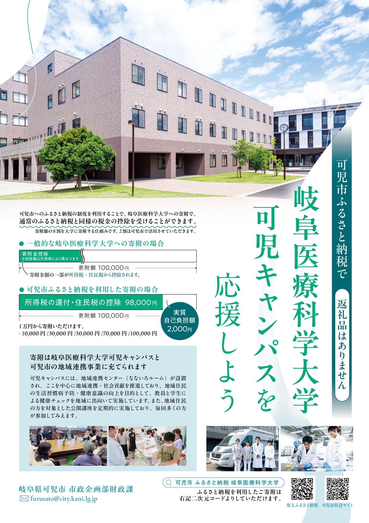 このたび岐阜医療科学大学では、岐阜県可児市へのふるさと納税制度を活用し、本学へのご支援をいただける仕組みが整いました。