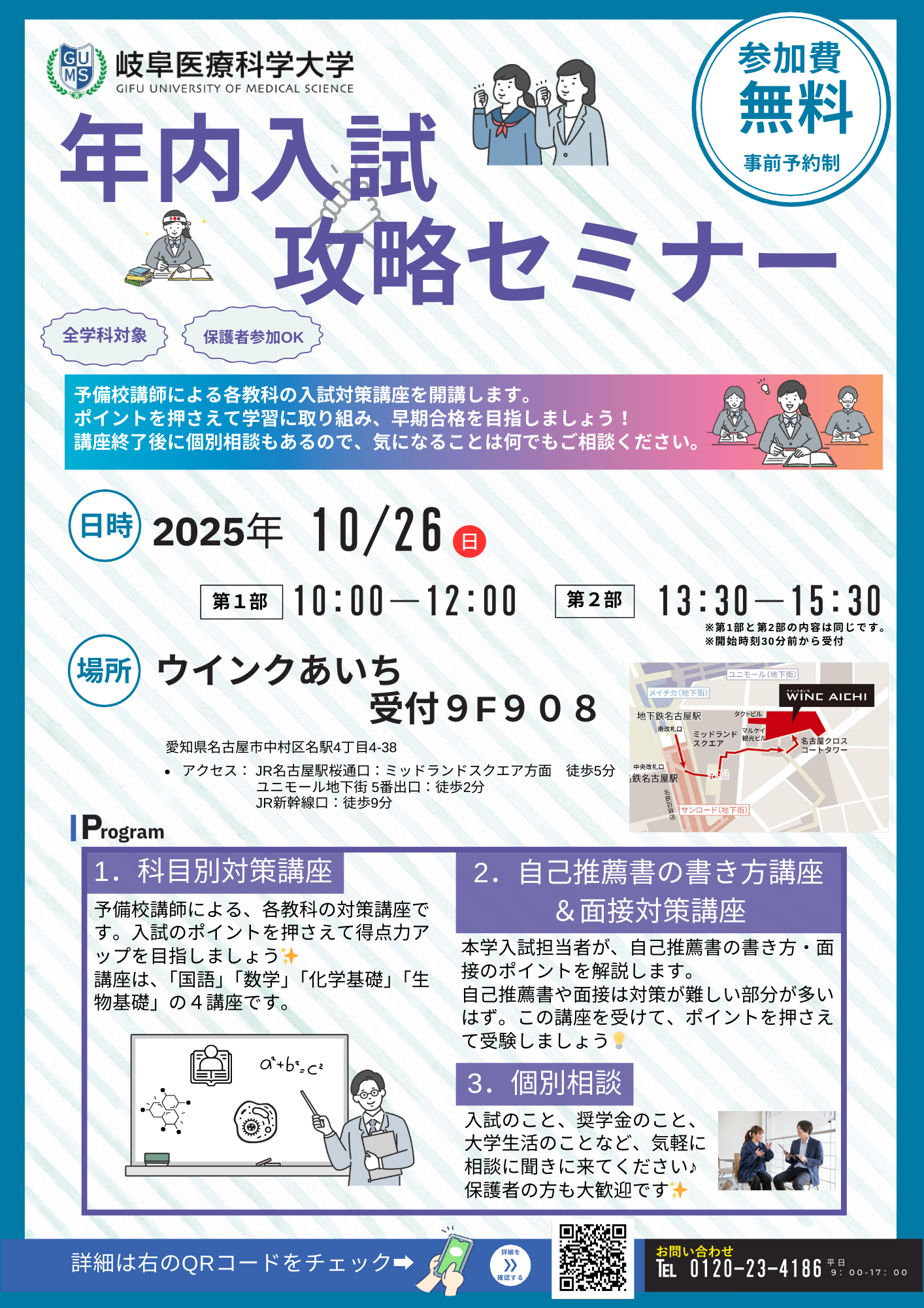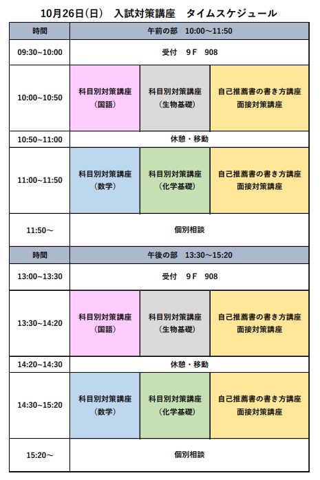 本学の入試に関わる全学科を対象とした講座になっているので、是非参加をして早期合格を目指しましょう!