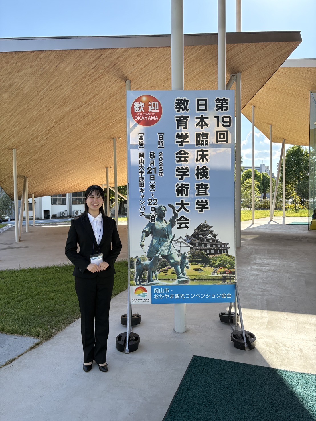 臨床検査学科2年生 三宅萌生さんが、新入生研修会に実施した「ボードゲーム型キャリアデザイン講座」に関する教育効果の研究成果について、8月21、22日に岡山大学で開催された「第19回日本臨床検査学教育学会学術大会」で研究発表を行いました。日本臨床検査学教育学会は、臨床検査技師養成校の教員が所属する学会で、臨床検査学および臨床検査技師教育・研究の発展を目的に活動しています。三宅萌生さんは、学術大会の学部生の部の一般演題で発表しました。