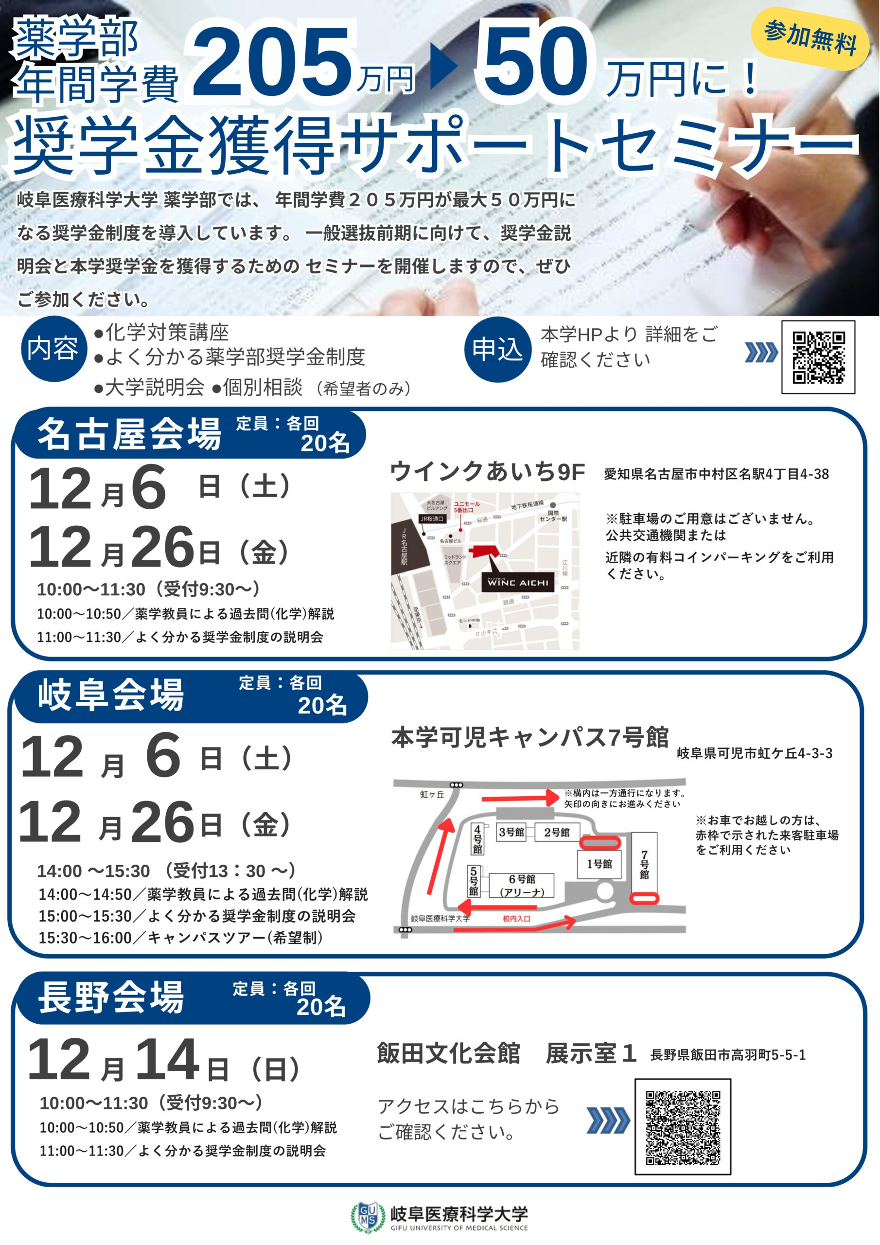 薬学部 奨学金獲得サポートセミナー(岐阜・名古屋:12月26日)(長野:12月14日)参加無料