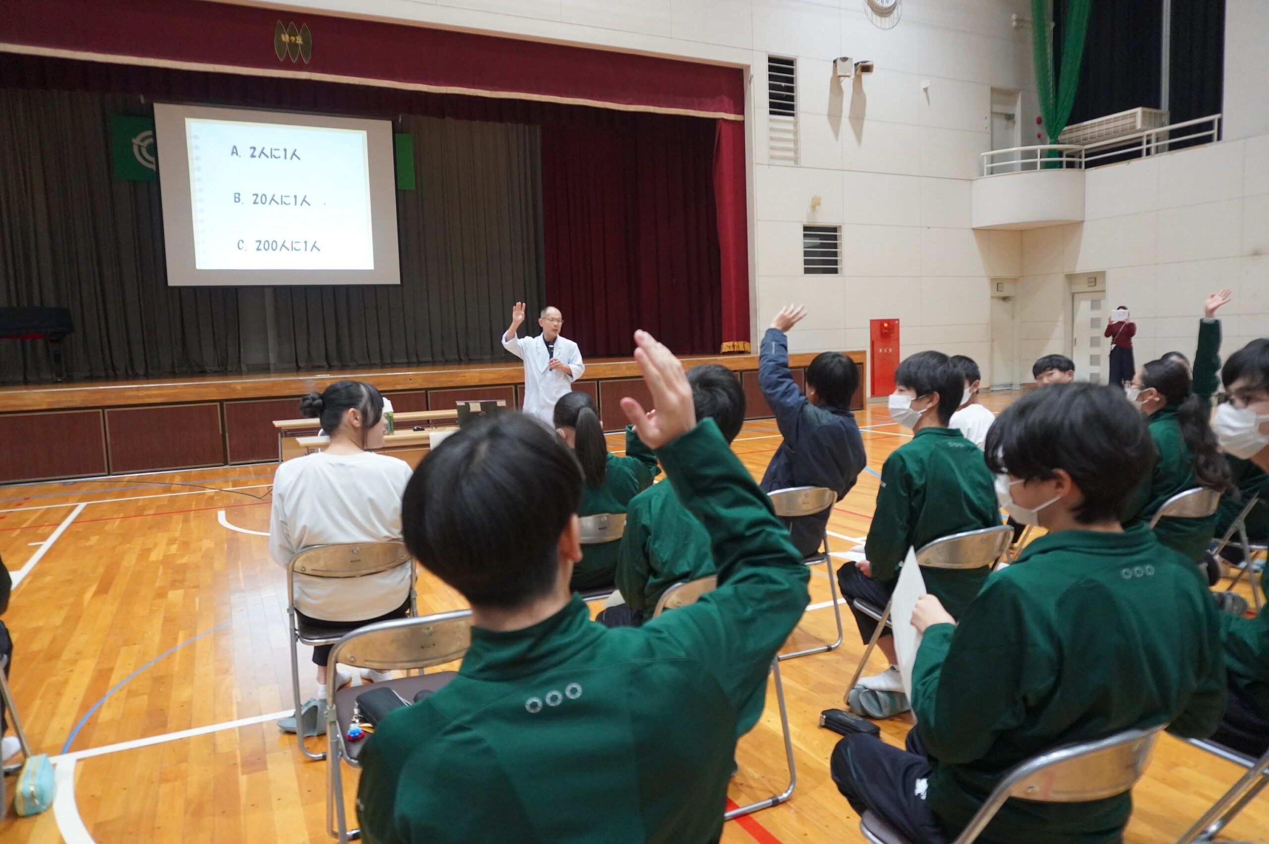 生徒たちは真剣な表情で講義に耳を傾け、自分自身や家族の健康について考える姿が見られました。