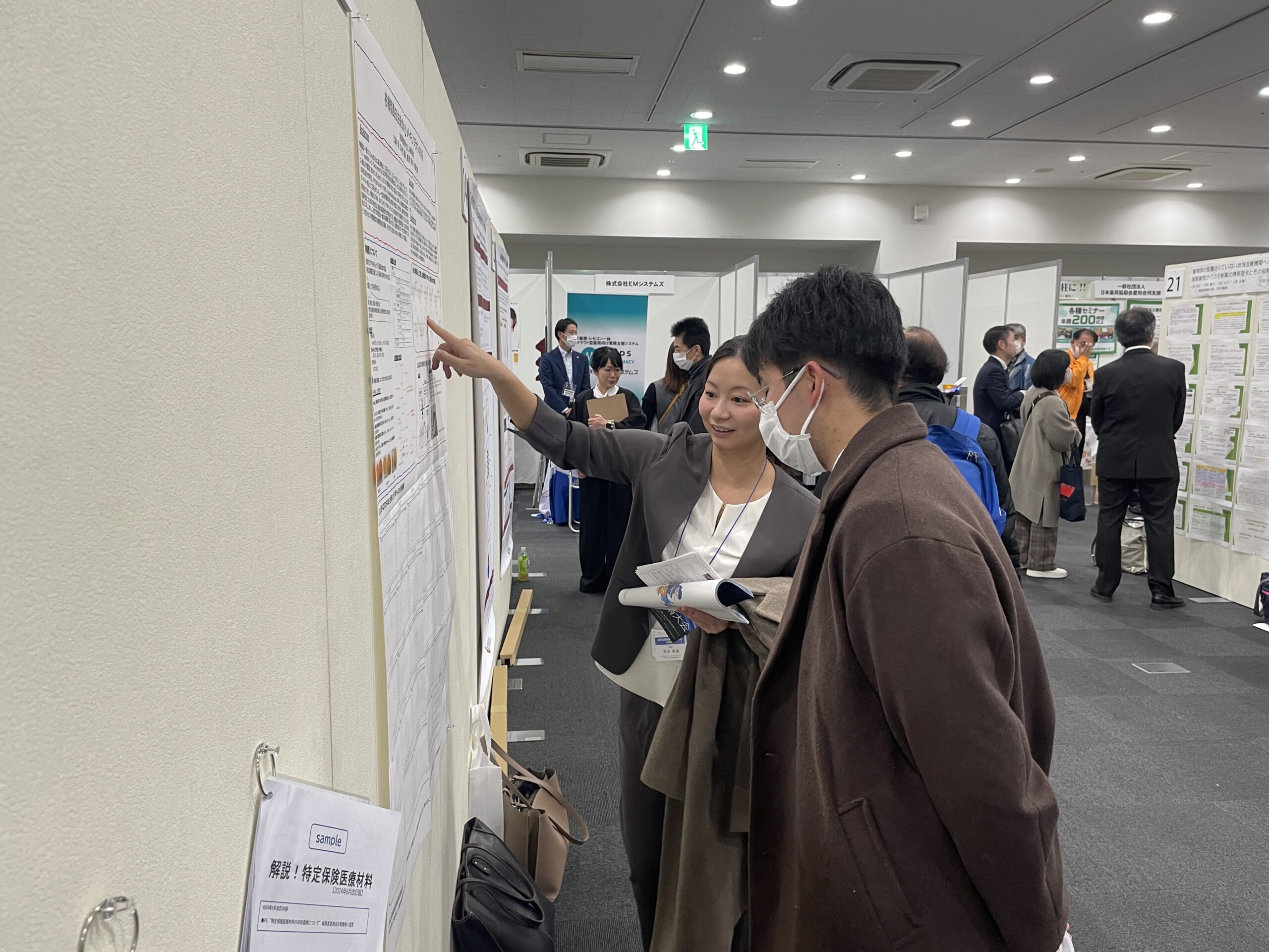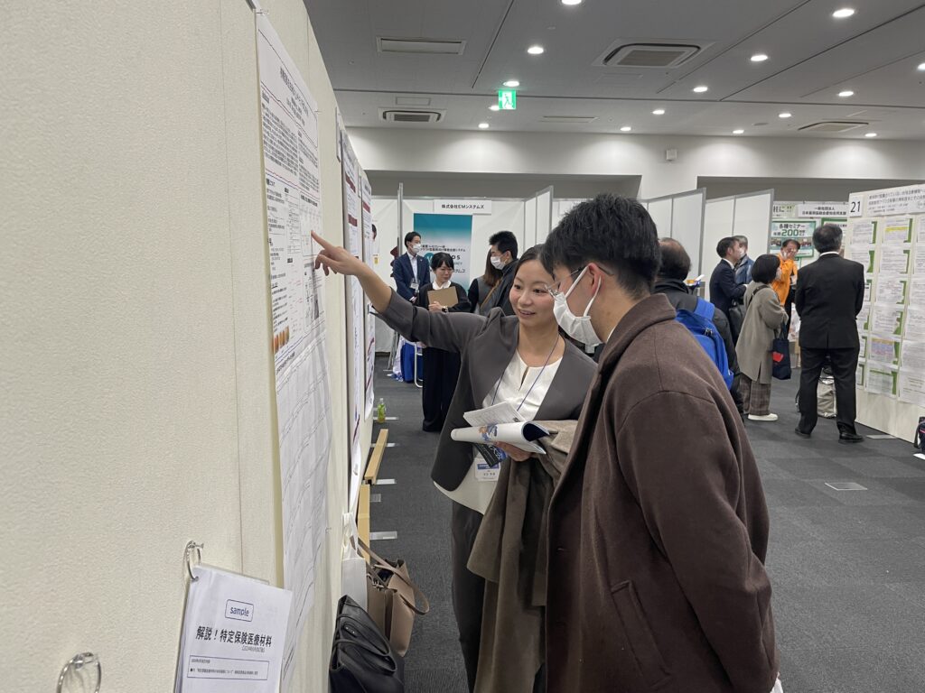 発表ブースでは、研究内容や成分⽐較の意義について笠博⼠が参加者へ説明し、⾷品副産物の利活⽤に向けた可能性について活発な意⾒交換が⾏われました。