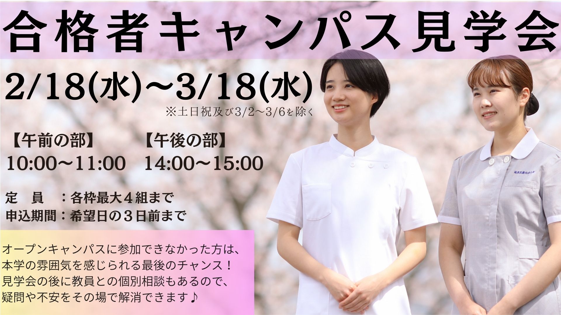 入学前にキャンパスを実際に見学したい方に向けて、**合格者限定の「キャンパス見学会」**を実施します。