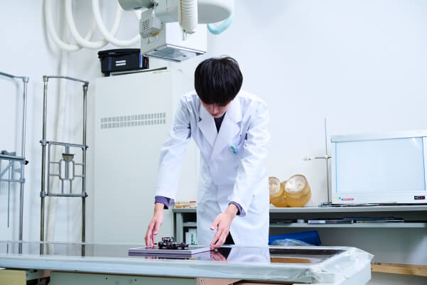 一般撮影は比較的検査時間が短く、素早く患者の全体像を知りたいときに有用です。一般撮影は全体的な評価を簡単に、そして便利に行える検査として普及しています。精密検査というよりは、最初に状況を把握したり経過観察を行ったりする際に利用されることが多いね。